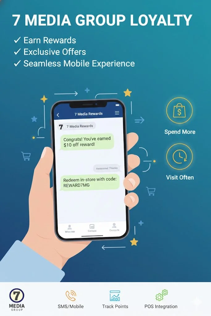 Mobile Loyalty Rewards Powered by SMS. Built on 7 Media Group.